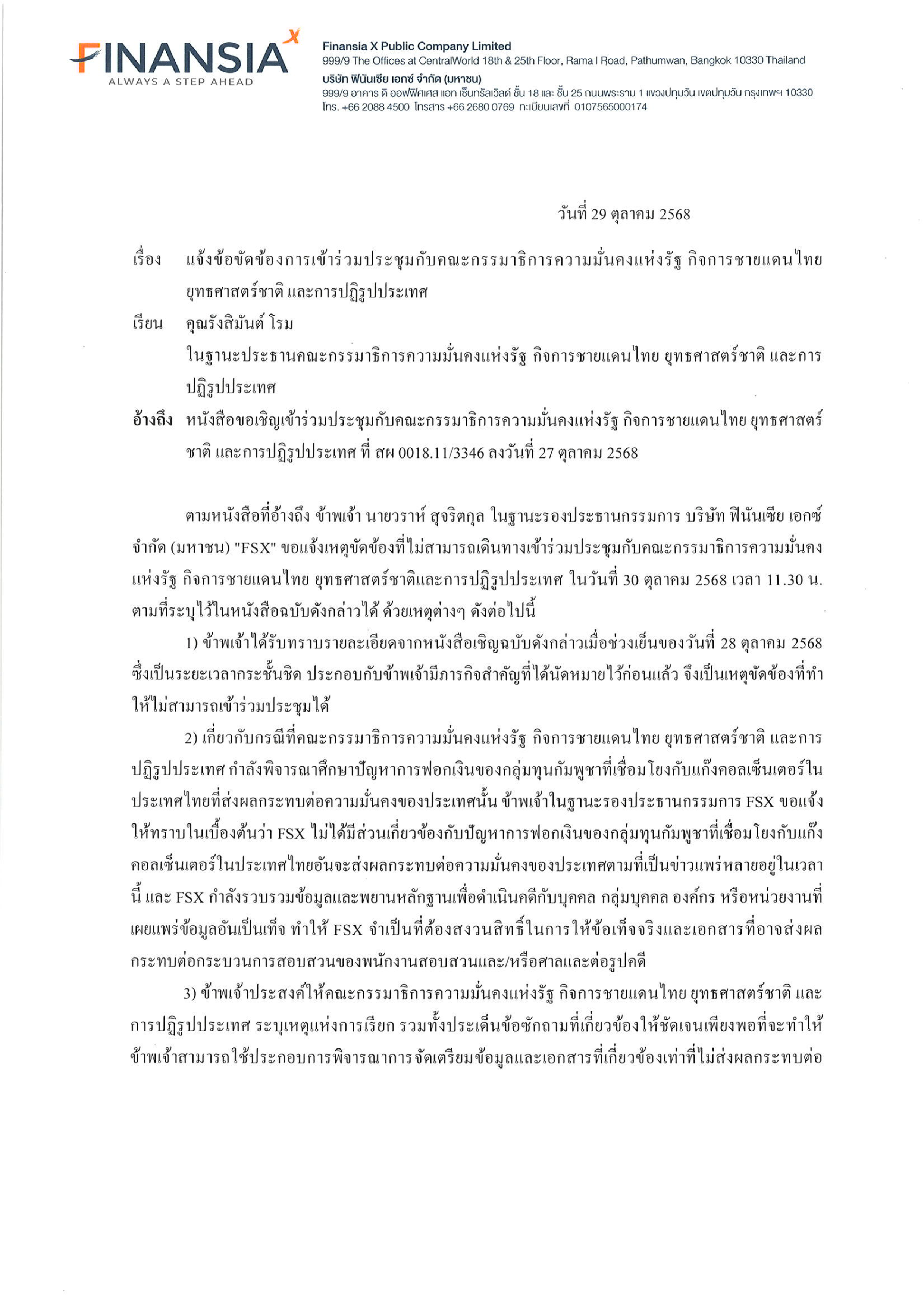 แจ้งข้อขัดข้องการเข้าร่วมประชุมกับคณะกรรมาธิการความมั่นคงแห่งรัฐ กิจการชายแดนไทยยุทธศาสตร์ชาติ และการปฏิรูปประเทศแชร์เพจ