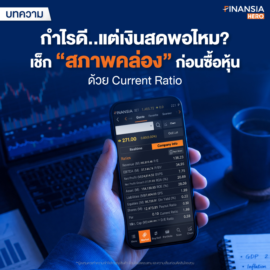 Current Ratio คืออะไร?03/04/2026HERO Digital MarketingArticle Current Ratio คืออะไร? ตัวชี้วัดสภาพคล่องบริษัทที่ช่วยให้นักลงทุนรู้ว่ามีเงินพอจ่ายหนี้ระยะสั้นหรือไม่ พร้อมวิธีดูผ่าน Finansia HERO Read More→