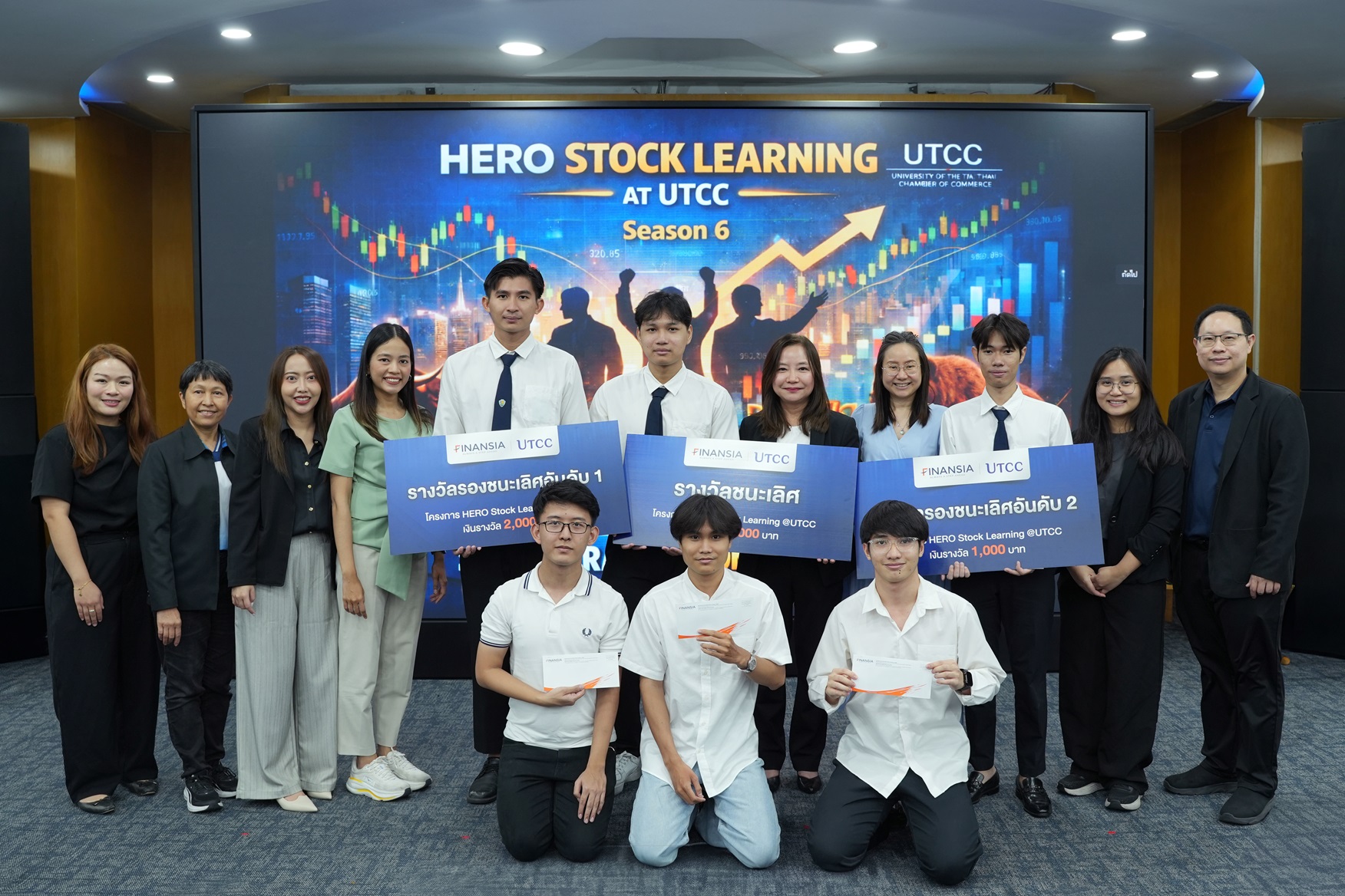 ประสบความสำเร็จอย่างต่อเนื่อง สำหรับโครงการ “HERO Stock Learning @ UTCC Season 6“ โดย บริษัทหลักทรัพย์ ฟินันเซีย ไซรัส จำกัด (มหาชน) ร่วมมือกับ คณะบริหารธุรกิจ มหาวิทยาลัยหอการค้าไทย เฟ้นหา Smart Trader รุ่นใหม่ ผ่านการแข่งขันเทรดหุ้นจำลอง เพื่อก้าวสู่เส้นทางนักลงทุนมืออาชีพ โดยได้รับเกียรติจาก คุณนุสรา รุ่นเจริญ กรรมการผู้จัดการอาวุโส บริษัทหลักทรัพย์ ฟินันเซีย ไซรัส จำกัด (มหาชน) มอบทุนการศึกษาและเกียรติบัตรให้กับนักศึกษาผู้ชนะการแข่งขันในโครงการ และ อาจารย์สิริธิดา สงขวัญ รองคณดีฝ่ายกิจการนักศึกษา คณะบริหารธุรกิจ มหาวิทยาลัยหอการค้าไทย ร่วมแสดงความยินดี