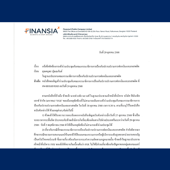 แจ้งข้อขัดข้องการเข้าร่วมประชุมกับคณะกรรมาธิการการป้องกันปราบปรามการฟอกเงินและยาเสพติด